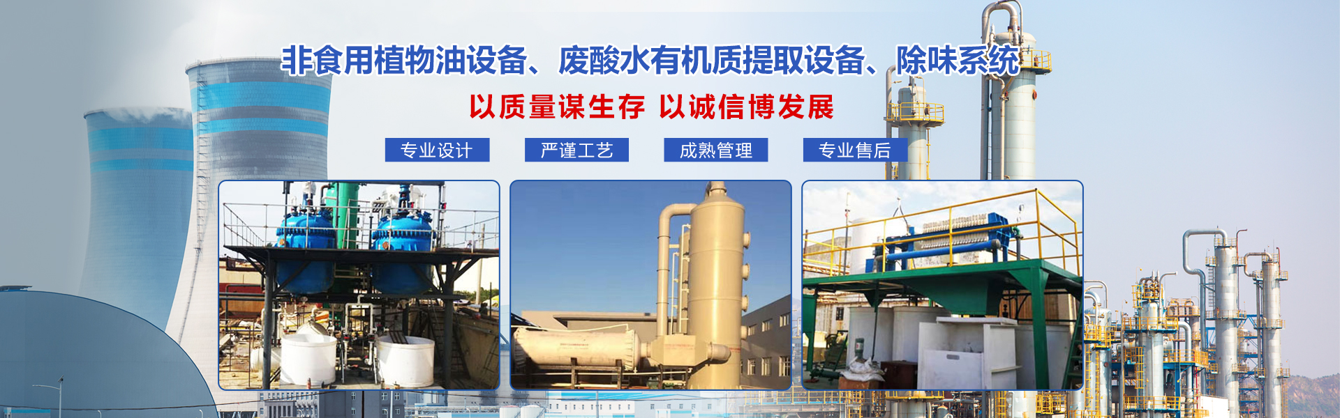 海南盛陽世紀(jì)機(jī)械設(shè)備有限公司是一家專門從事非食用植物油生產(chǎn)設(shè)備、廢酸水有機(jī)質(zhì)提取設(shè)備、除味系統(tǒng)、水處理工藝設(shè)備的設(shè)計、研發(fā)、制造、銷售、租賃以及技術(shù)培訓(xùn)、自動化設(shè)計等一站式服務(wù)的專業(yè)公司